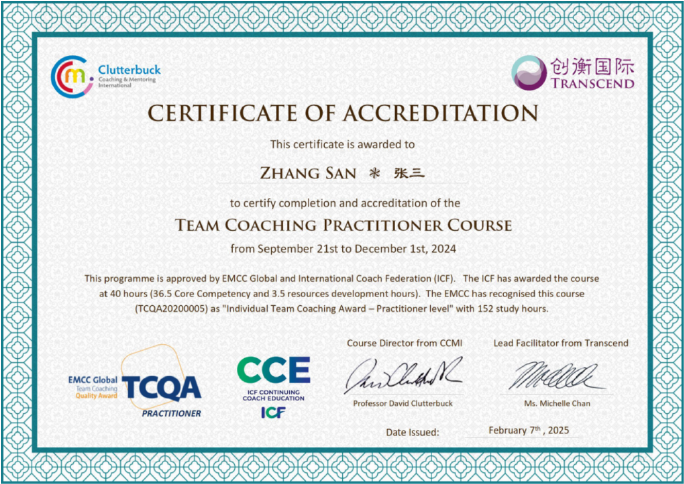 ICF ACTC(国际团队教练)证书